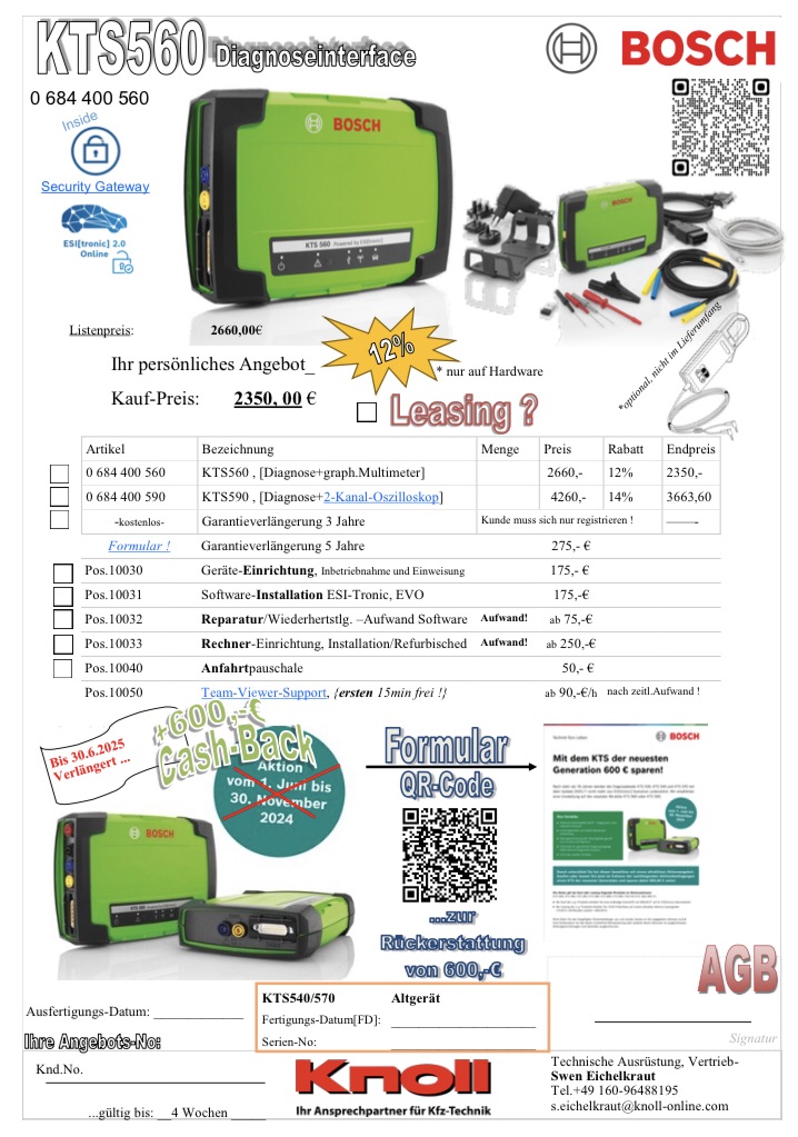 Januar 30, 2025Januar 30, 2025 admin Bosch, cash-back, Diagnose, geschützte Fahrzeug-Diagnose, KTS, SDA