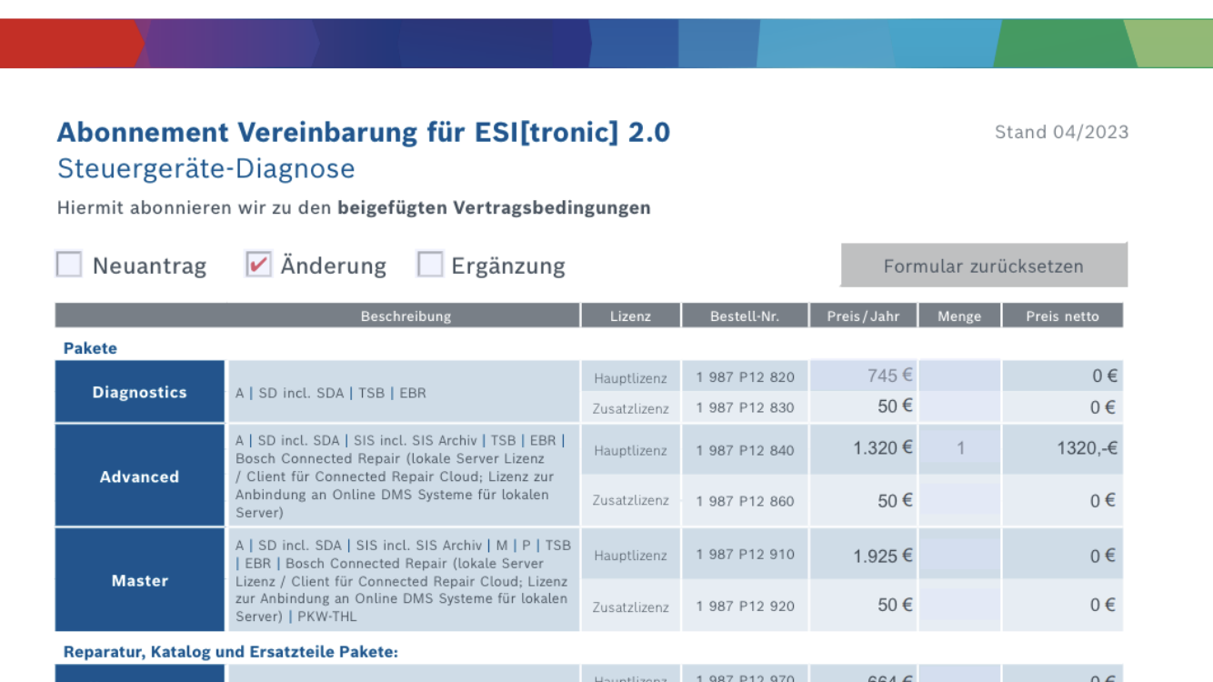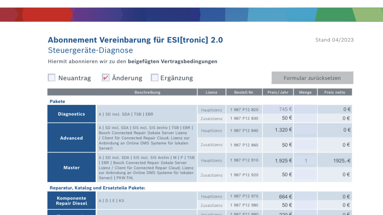 wir möchten Sie heute darüber informieren, dass wir von den einzelnen ESI[tronic] Infoarten auf ESI[tronic] Pakete umstellen werden.