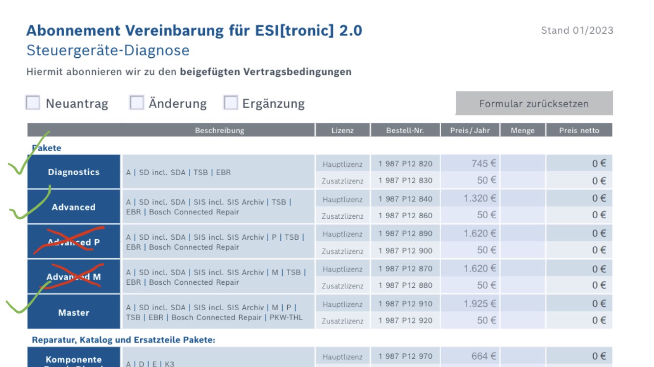 …voraussichtlich +30,-€ auf Diagnostics/ +60,-€ auf Advanced und Master}