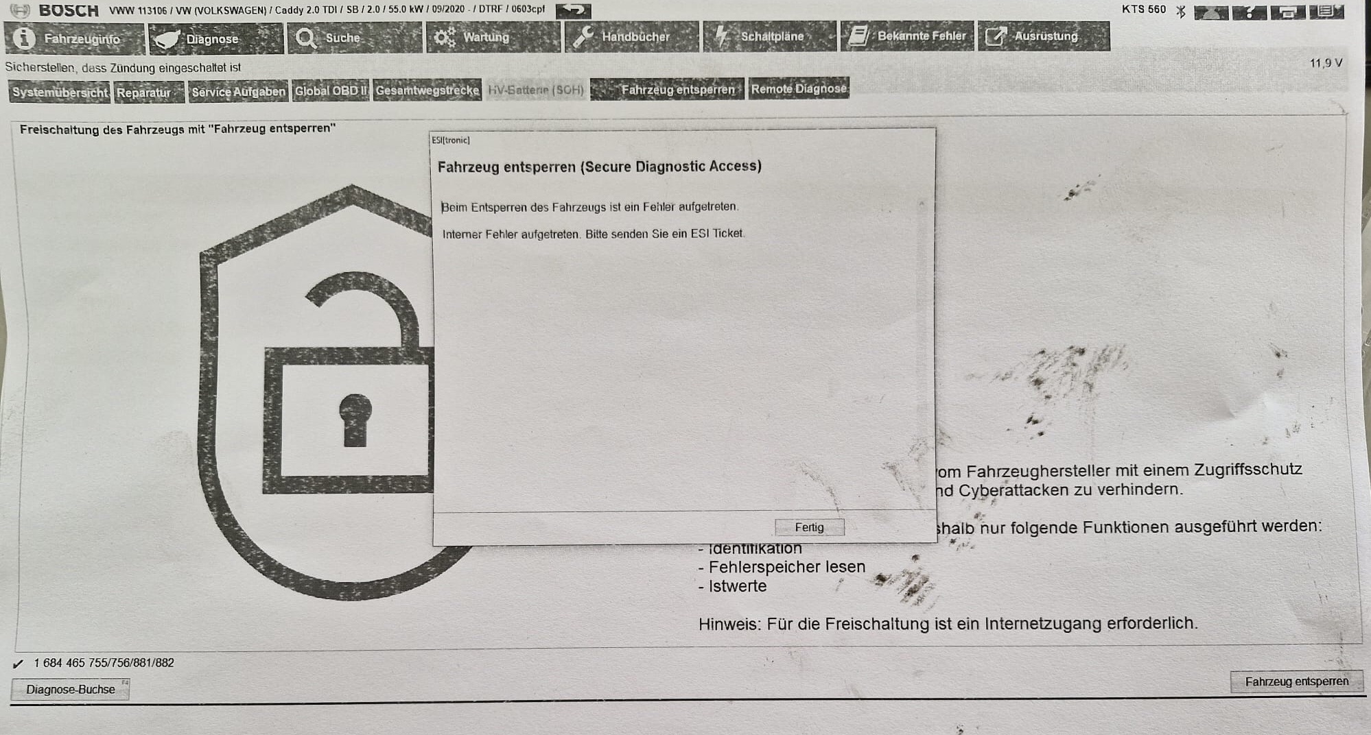 Im Moment ist es für ESI[tronic]-Nutzer nicht möglich, geschützte VAG-Fahrzeuge zu entriegeln.
