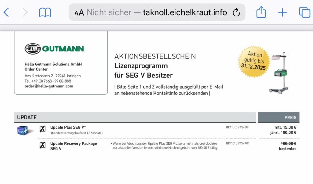 Dank der aktuellen Aktionsangebote lohnt sich jetzt der Einstieg oder das Update doppelt – technisch wie finanziell. So ist beim Kauf eines neuen SEG V zum Preis von 4.190,00 € jetzt die ‚Update Plus SEG V‘-Lizenz für 12 Monate kostenlos enthalten. Der Gegenwert beträgt 180,00 Euro. Sie wird eigenständig über das Hella Gutmann Online-Kundenportal macs365 aktiviert. Die Lizenz bietet zahlreiche Zusatzfunktionen wie regelmäßige Datenbank- und Softwareupdates, intelligente Algorithmen zur Erkennung von Hell-Dunkel-Grenzen bei verschiedensten Lichtsystemen sowie Anleitungen zur Einstellung.